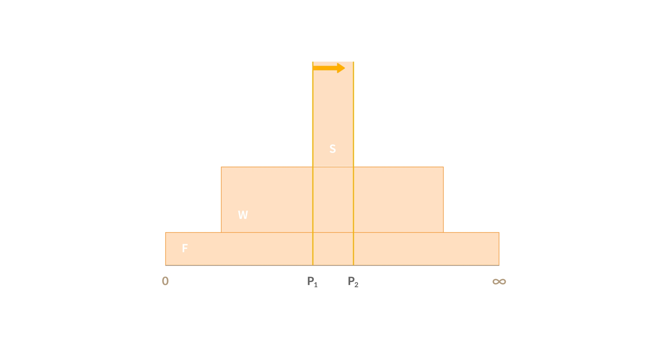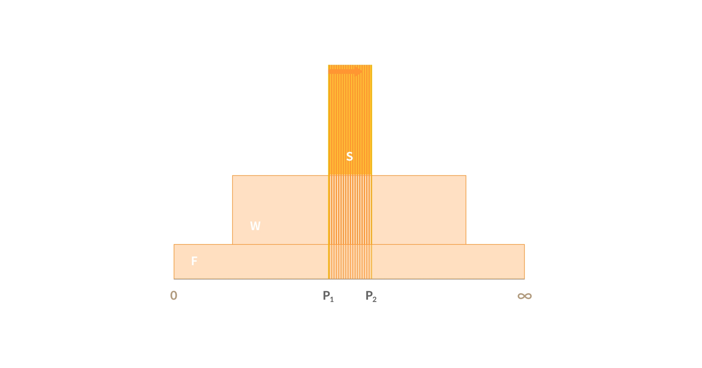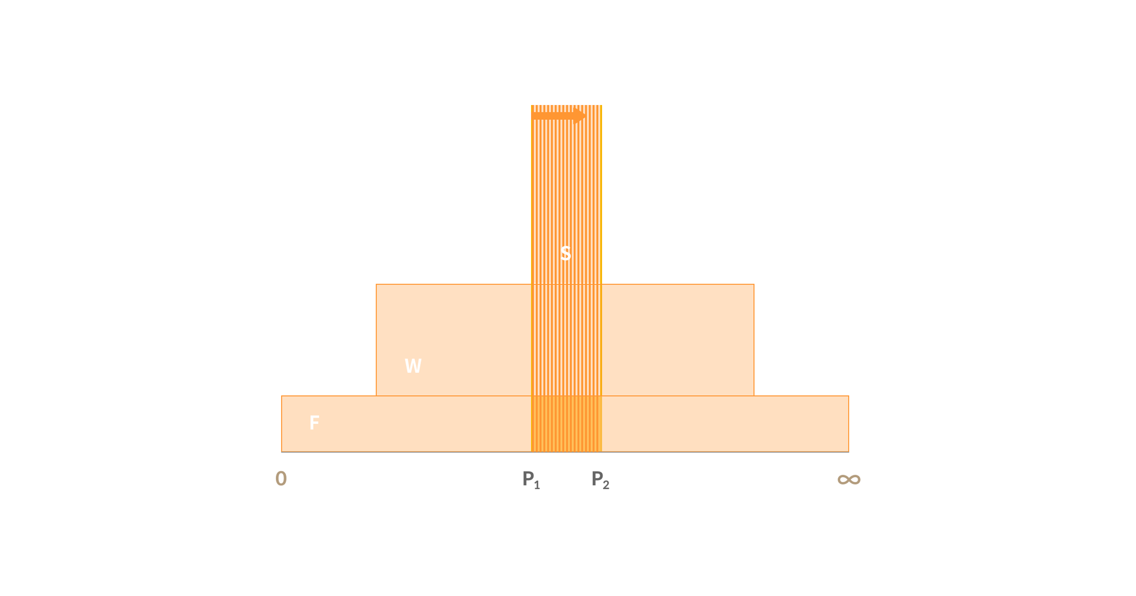 Assuming the trade volume is between the P1 and P2 range and the liquidity size (Spot, Wide, Full range) of each price range is as follows, the expected return will be calculated as follows.